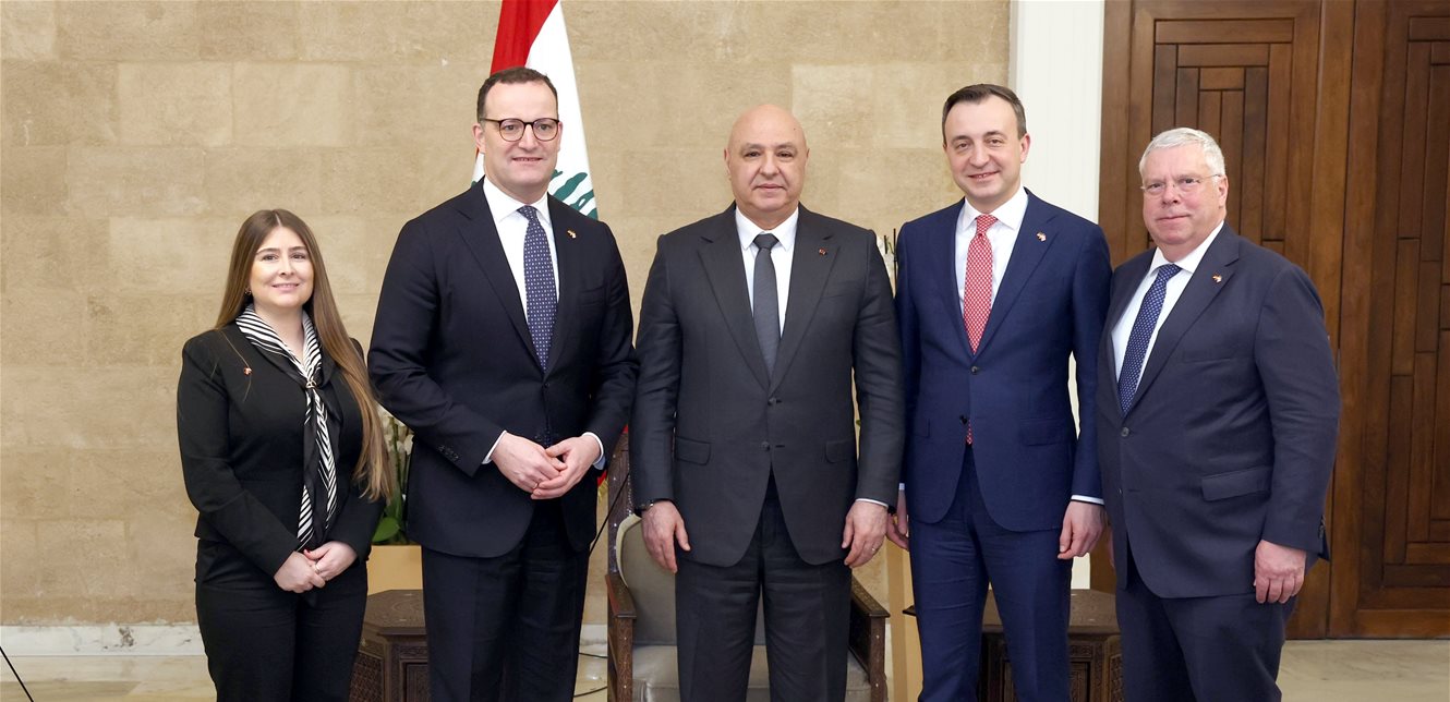 ابلغ رئيس الجمهورية العماد جوزاف عون رئيس الكتلة النيابية في البرلمان الألماني العائدة للحزب الحاكم (الاتحاد الديموقراطي المسيحي والاتحاد الاجتماعي المسيحي) جنز سبانJens Spahn خلال استقباله له قبل ظهر اليوم في قصر بعبدا مع الوفد النيابي المرافق، وفي حضور السفير الألماني في